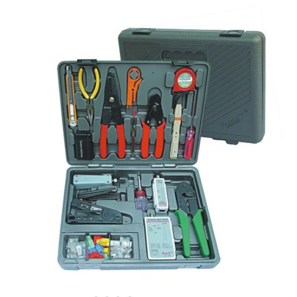 В состав набора входят приборы и для определения неисправностей и идентификации кабеля, определения полярности и присутствующего напряжения на линии, а также инструменты для монтажа модульных разъёмов, врезки кабеля в кросс, инструмент для резки и зачистки кабеля. Инструменты размещаются в специальном ящике, выполненном из прочного пластика. Все инструменты удобно размещаются в специальных карманах, что обеспечивает надёжное хранение и быстрый доступ к ним.