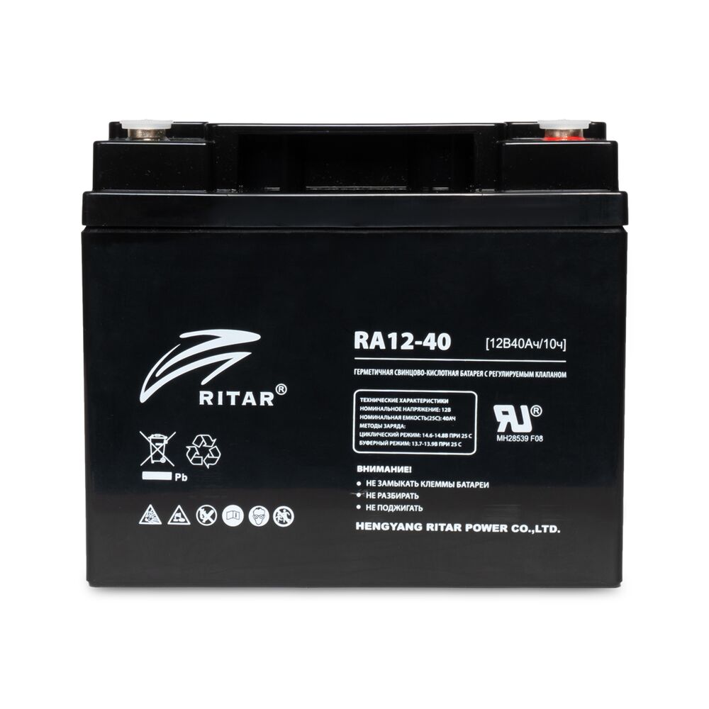 Батарея, Ritar, RA12-40, Свинцово-кислотная 12В 40 Ач, Вес нетто: 11,5 кг, Размер в мм.: 198*166*169