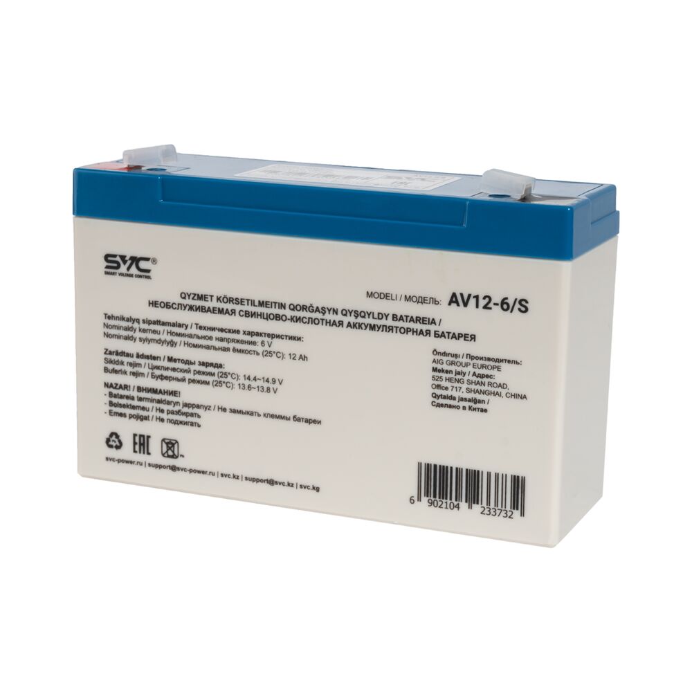 Батарея, SVC, AV12-6/S, Свинцово-кислотная 6В 12Ач, Вес нетто: 1,7 кг, Размер в мм.: 151*50*100