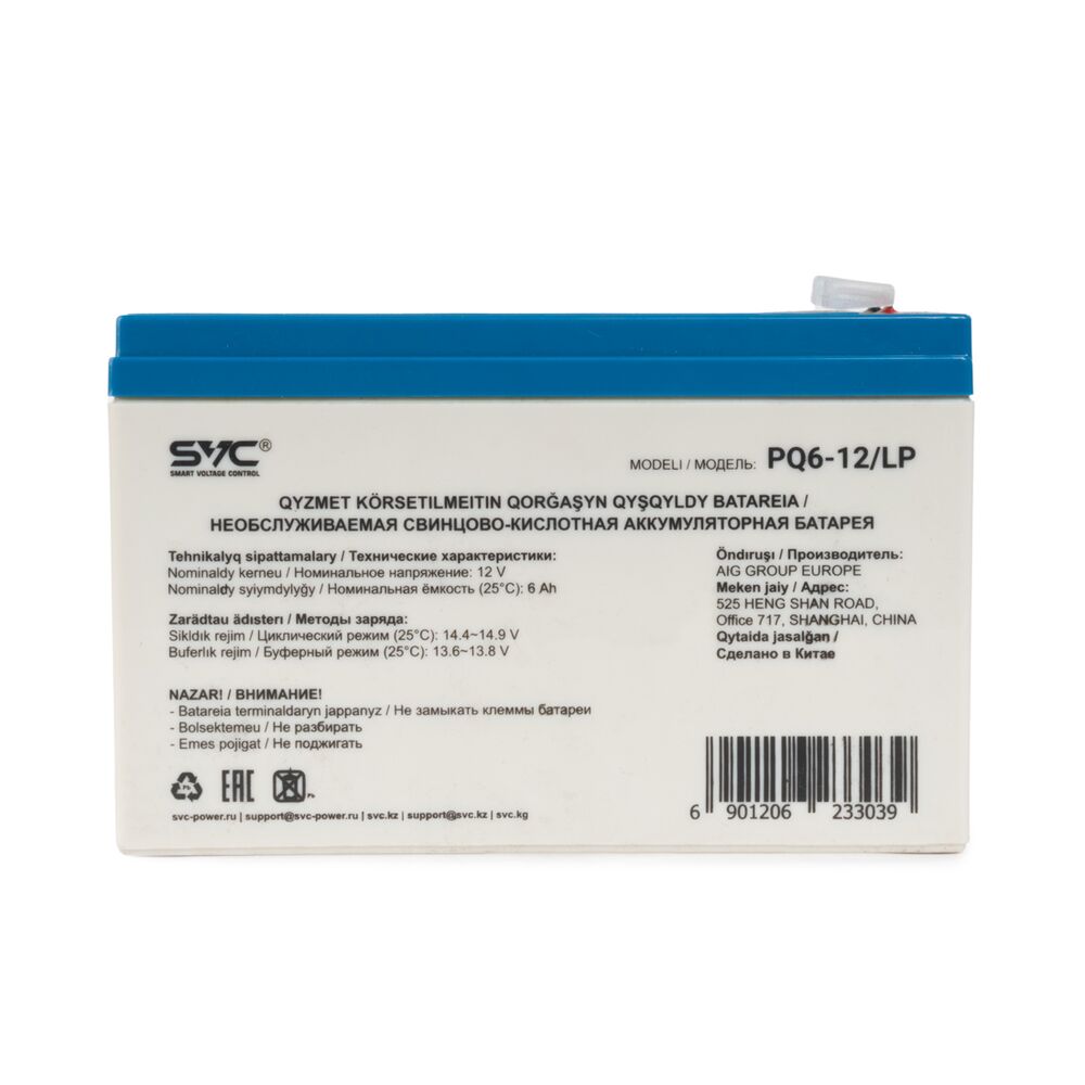 Батарея, SVC, PQ6-12/LP, Свинцово-кислотная 12В 6 Ач, Вес: 1,94 кг, Размер в мм.: 151*50*100