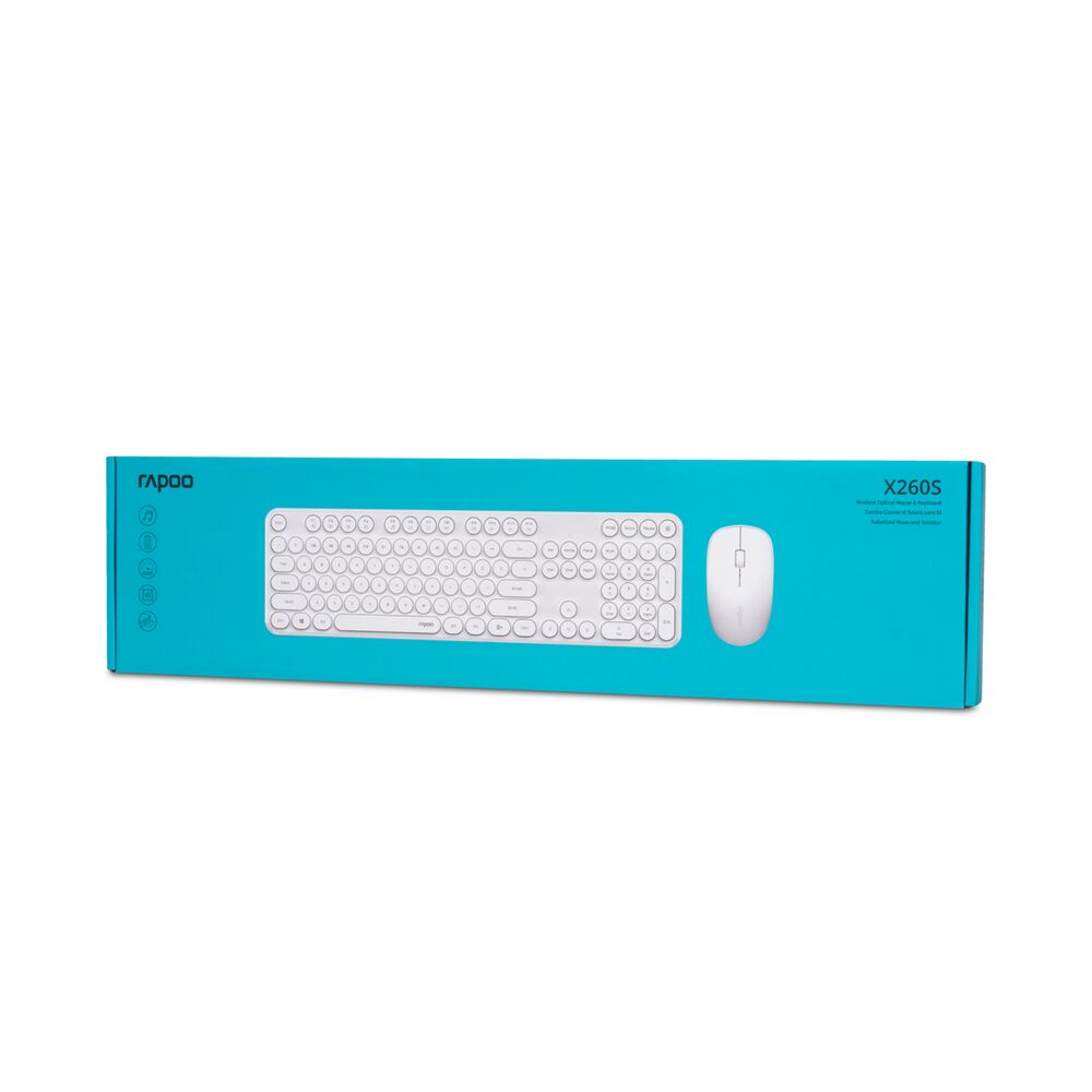 Комплект Клавиатура + Мышь, Rapoo, X260S, Беспроводная 2.4G, 1300DPI, Нано-ресивер, Кол-во стандартных клавиш 104, Рус/Англ, Пластик, Белый