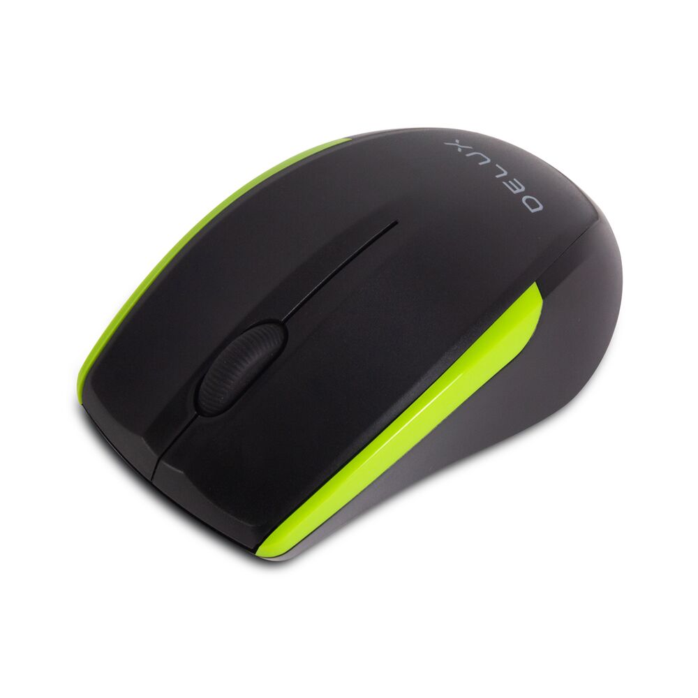 Компьютерная мышь, Delux, DLM-321OGB, Оптическая, 800/1000/1600 dpi,Беспроводная 2.4ГГц, Нано-ресивер, Эффективная дистанция 10 м., Чёрно-зелёный