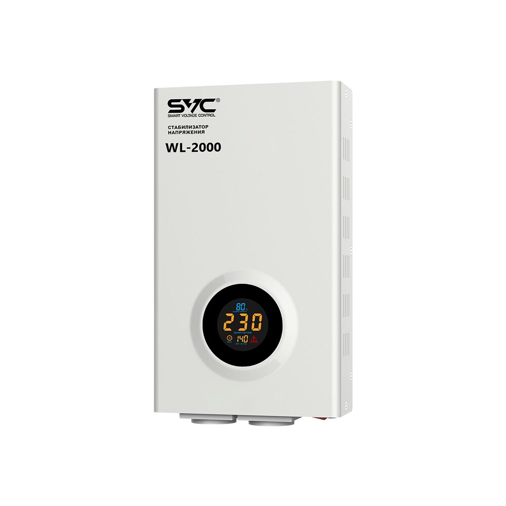 Стабилизатор (AVR), SVC, WL-2000, Мощность 2000ВА/2000Вт, LED-дисплей, Диапазон работы AVR: 140-260В, Вых.: 220В+/-7%, 2 х Schuko, Кабель питания: 1,35м, Белый